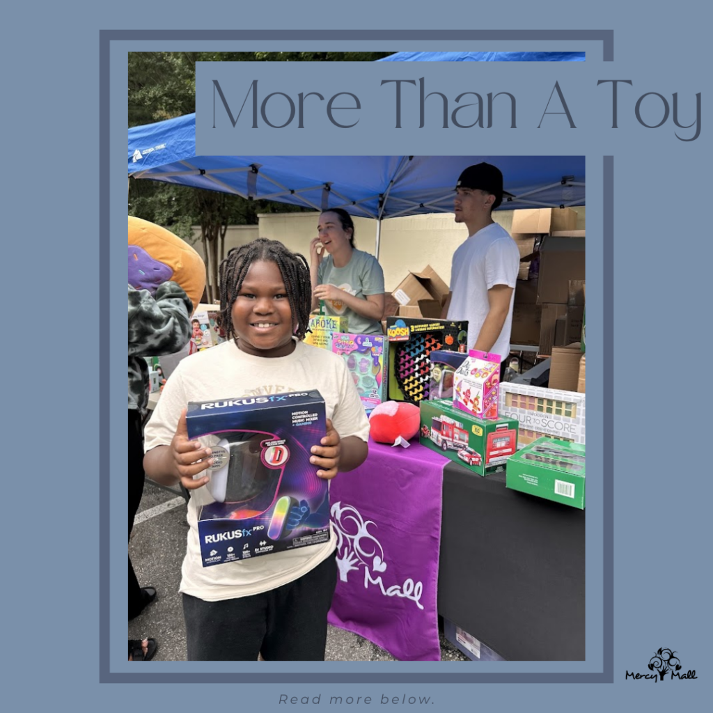 This summer, through a partnership with Henrico County Public Schools’ McKinney-Vento division and Toys for Tots, Mercy Mall of Virginia was able to serve 300 children living in housing instability. On July 10, 17, and 24, each child received up to three brand-new toys—thanks to Toys for Tots making toys available outside of the traditional holiday season.